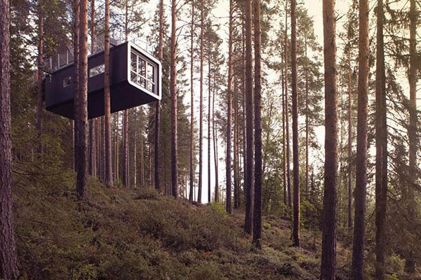 Dieses Baumhaushotel hat kaum Auswirkungen auf seine Umgebung. Es betreibt seine Fußbodenheizung durch Wasserkraft und seine Toiletten sind energieerzeugend.
